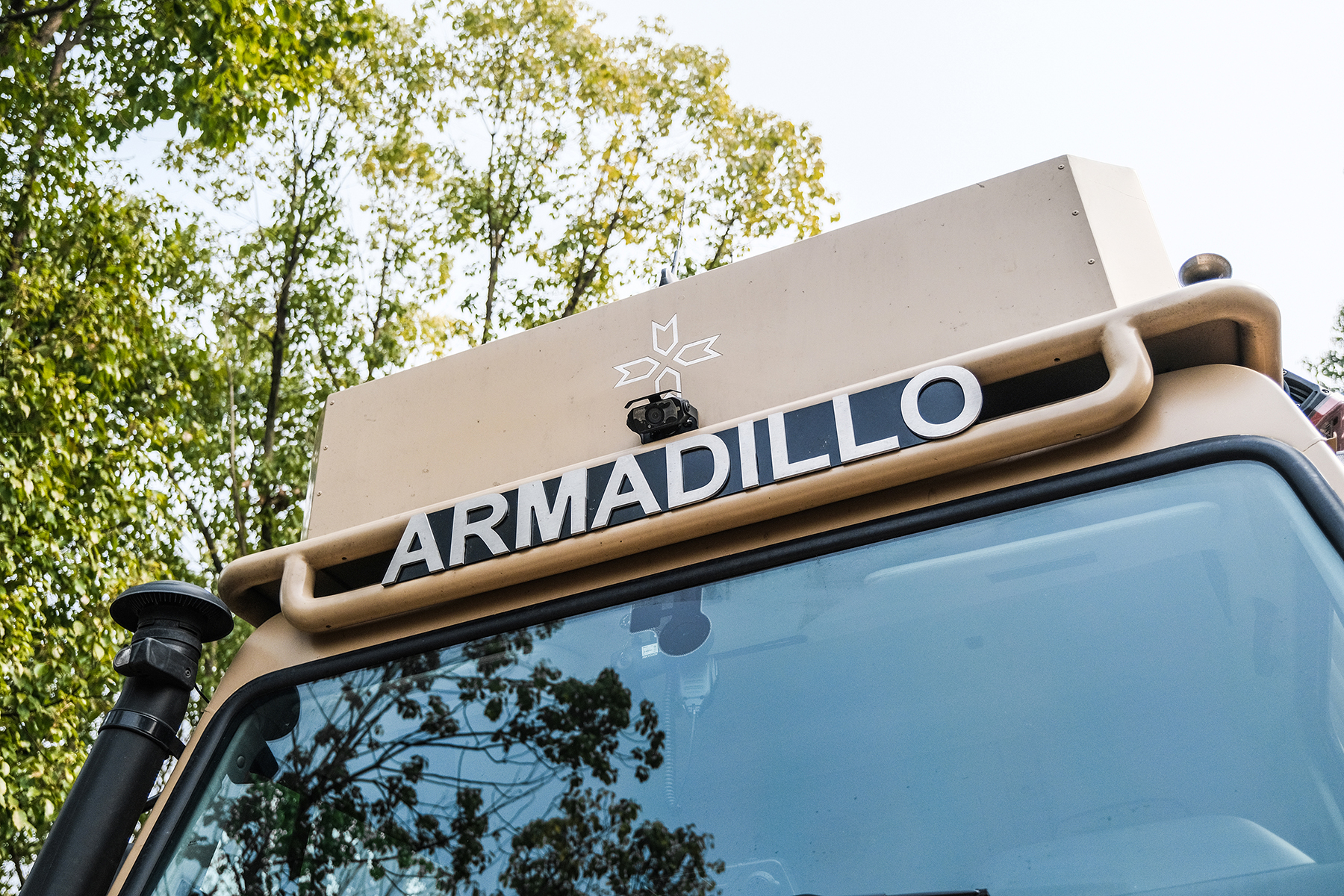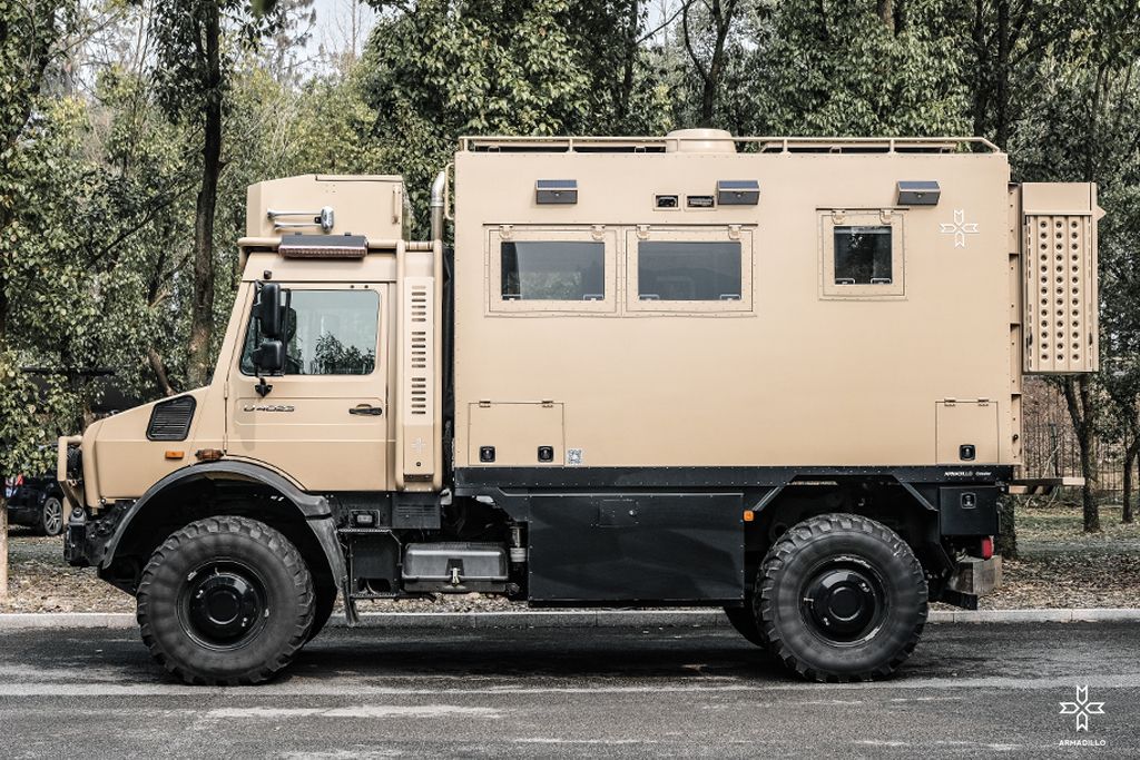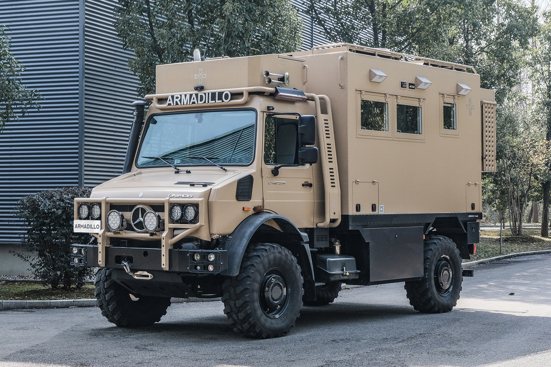 驾驶舱侧面配有爬梯,方便驾乘者爬至车顶。以用来维修车顶装备以及擦拭起居舱顶部的太阳能充电板。